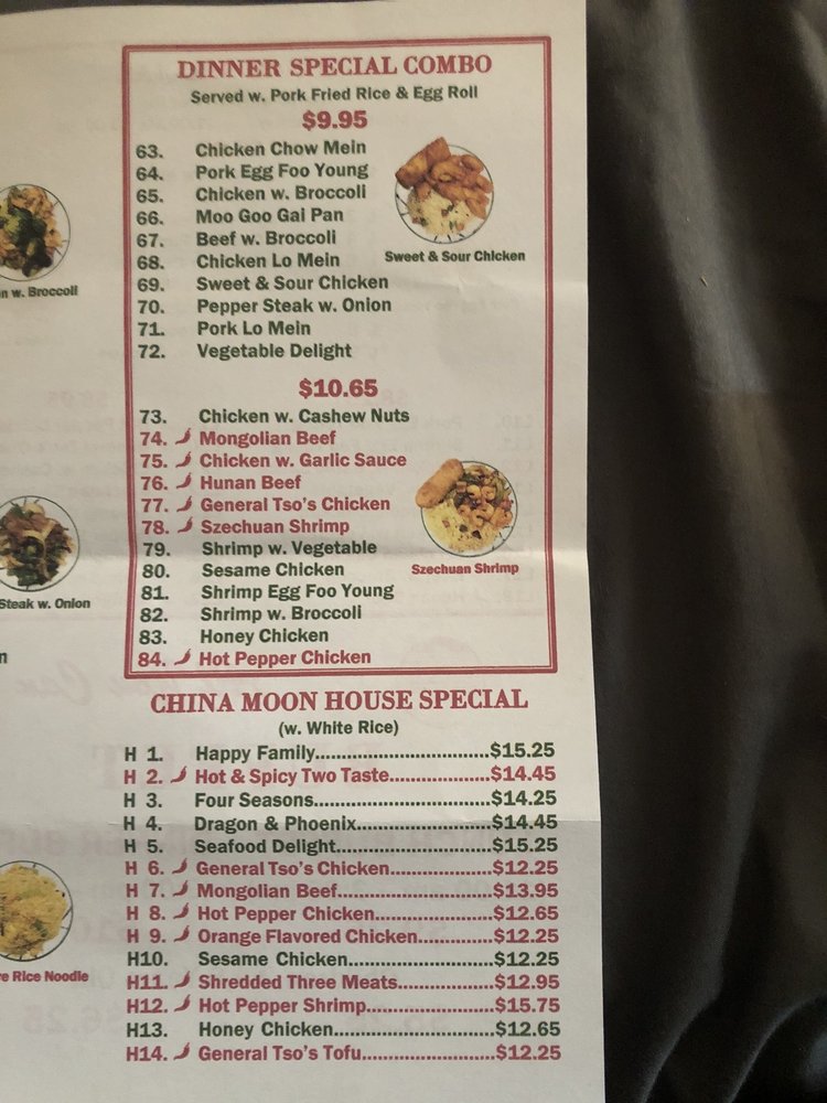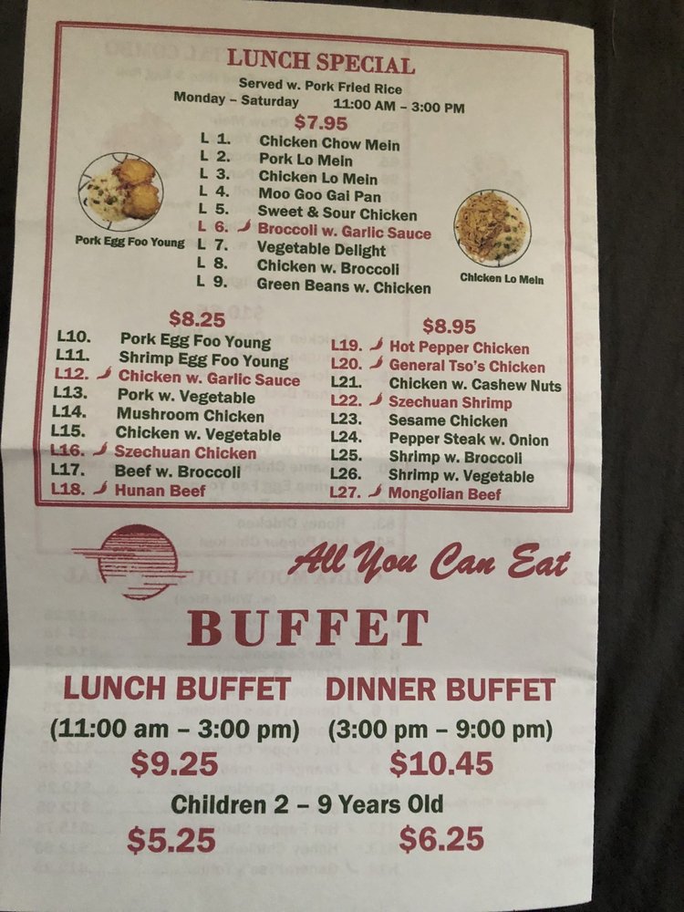 Introducing the menu at China Moon Restaurant, the only Chinese spot in Madison, SD, offers a variety of dishes that cater to different tastes. Customers have raved about the pork fried rice, crab Rangoon, and egg drop soup, highlighting the flavorful options available. The buffet is praised for being well-kept and reasonably priced, with generous portions that satisfy. Along with the buffet, their takeout service is a standout feature, allowing customers to enjoy their favorite Chinese dishes from the comfort of their own home. While the buffet may be small, the quality of the food makes up for it. The restaurant's focus on providing delicious and affordable Chinese cuisine is evident in the positive reviews from satisfied customers. Whether dining in or ordering takeout, China Moon Restaurant promises a satisfying meal every time.